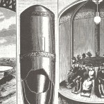 According to io9.com, this is from, “An 1891 issue of Scientific American. (It) showcased this invention by a one Monsieur Carron of Grenoble, France. In short, Carron had invented an amusement ride that involved 15 patrons falling almost 1,000 feet inside a 30-foot-long bullet, which then would land inside a champagne-flute-shaped, 180-foot-deep well.”
