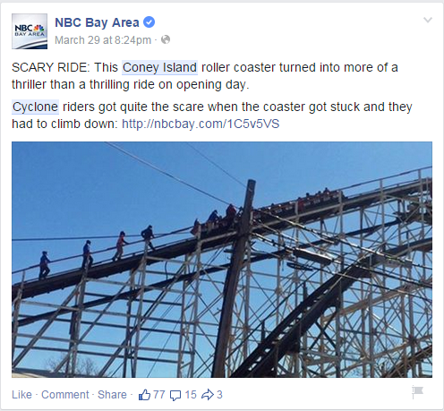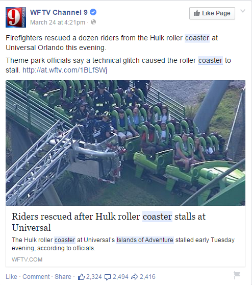 Let’s take that previous example of a coaster stalled on the lift. Why then does a person who’s car has broken down on the side of the interstate not make news? (Outside a traffic report). Think about it – here’s a ride vehicle, who has stopped suddenly – and is now on a median designed specifically for breakdowns.